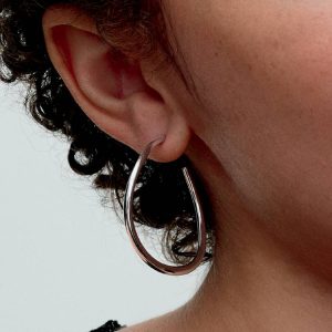 Organically Shaped Circle & Treated Freshwater Cultured Pearls Stud Earrings | Sterling silver