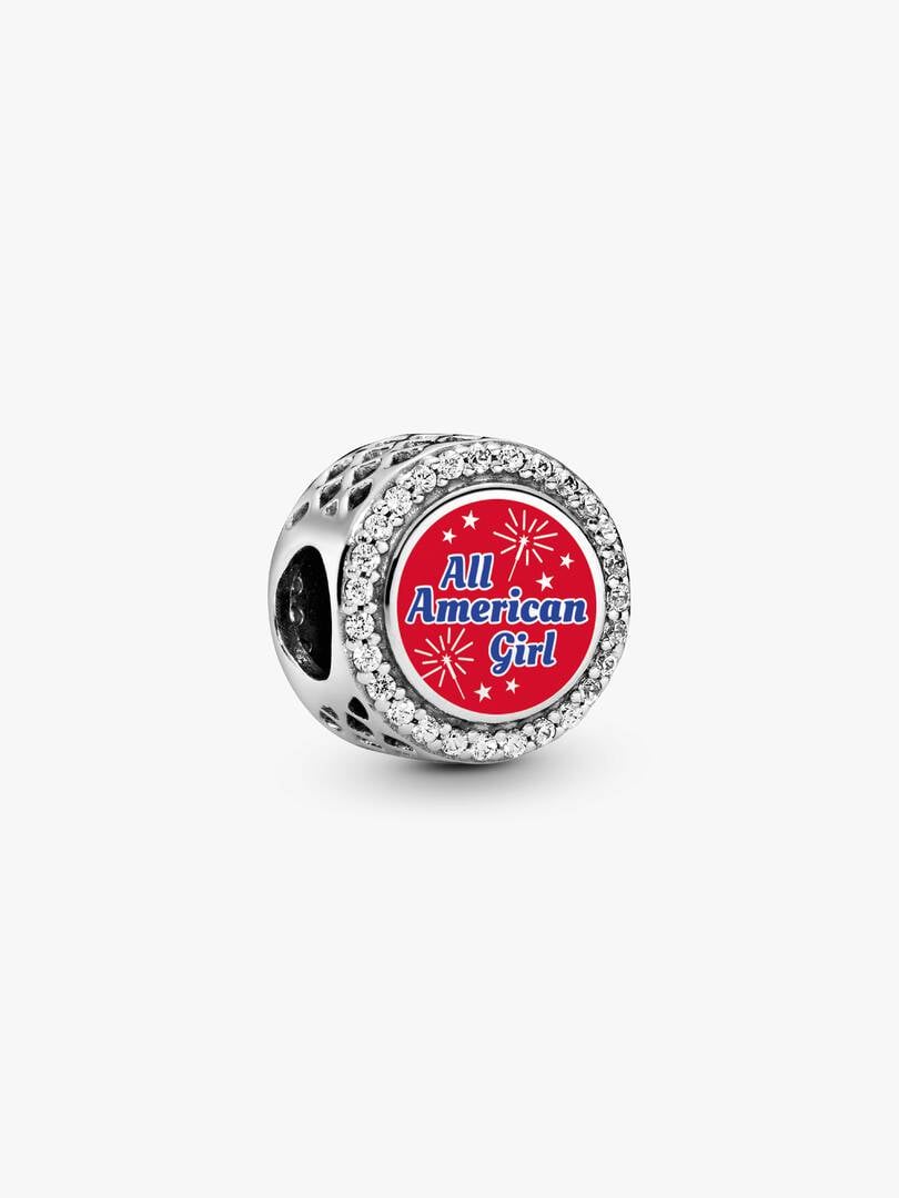 Show off your patriotic spirit with the Engravable All American Girl Charm. Crafted in sterling silver, this bold design features a vibrant red background bursting with firework details, symbolizing the excitement of Ind