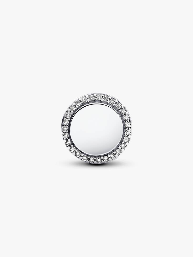 The Engravable Always & Forever Charm is a stunning representation of eternal love. This circle-shaped charm is encircled by a dazzling row of cubic zirconia, catching the light and adding a touch of sparkle. At the hear