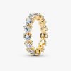 A wearable symbol of everlasting love. Heart-shaped stones and V-shaped prongs repeat to create this sparkling eternity ring: a contemporary take on the classic setting.