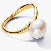 Introducing a new kind of classic with the Baroque Treated Freshwater Cultured Pearl Ring. This ring features one baroque treated freshwater cultured pearl in the center of a slightly wavy 14k gold-plated band with varyi