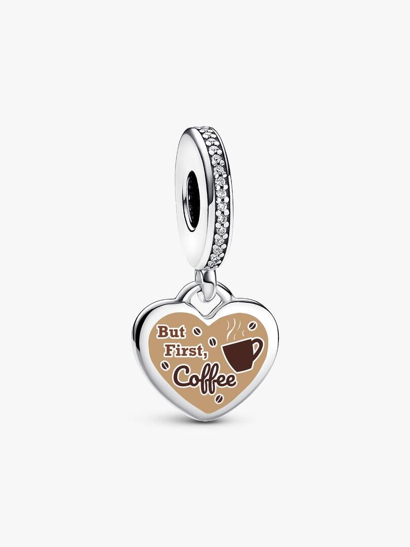 For the caffeine lover at heart, this sterling silver dangle charm shines with cubic zirconias and can be engraved for a personal, coffee-fueled touch.