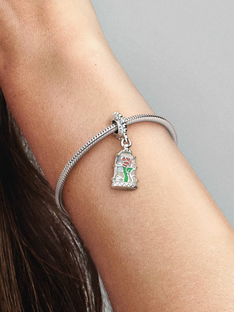 Disney Beauty and the Beast Enchanted Rose Dangle Charm | Pendant | Sterling silver