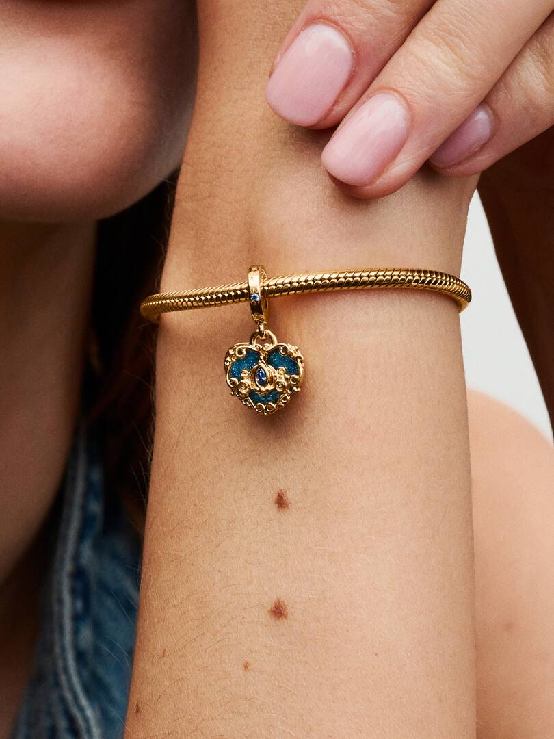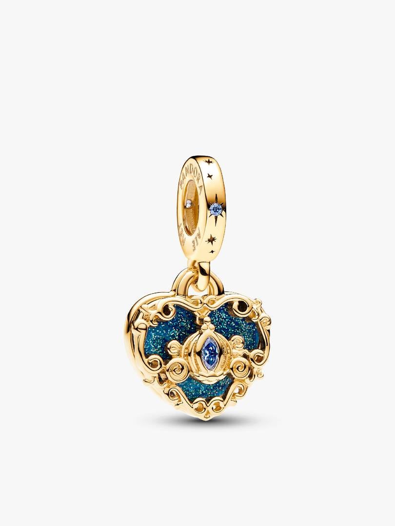 d carriage in intricate openwork, with a blue marquise-shaped stone at the centre. Behind it sits the second heart-shaped disc with glittery blue enamel, and on the back is the engraved message “A Dream is a wish your heart makes.” Wear it on your favourite necklace, bracelet or charm holder as a reminder of the power of following your dreams.