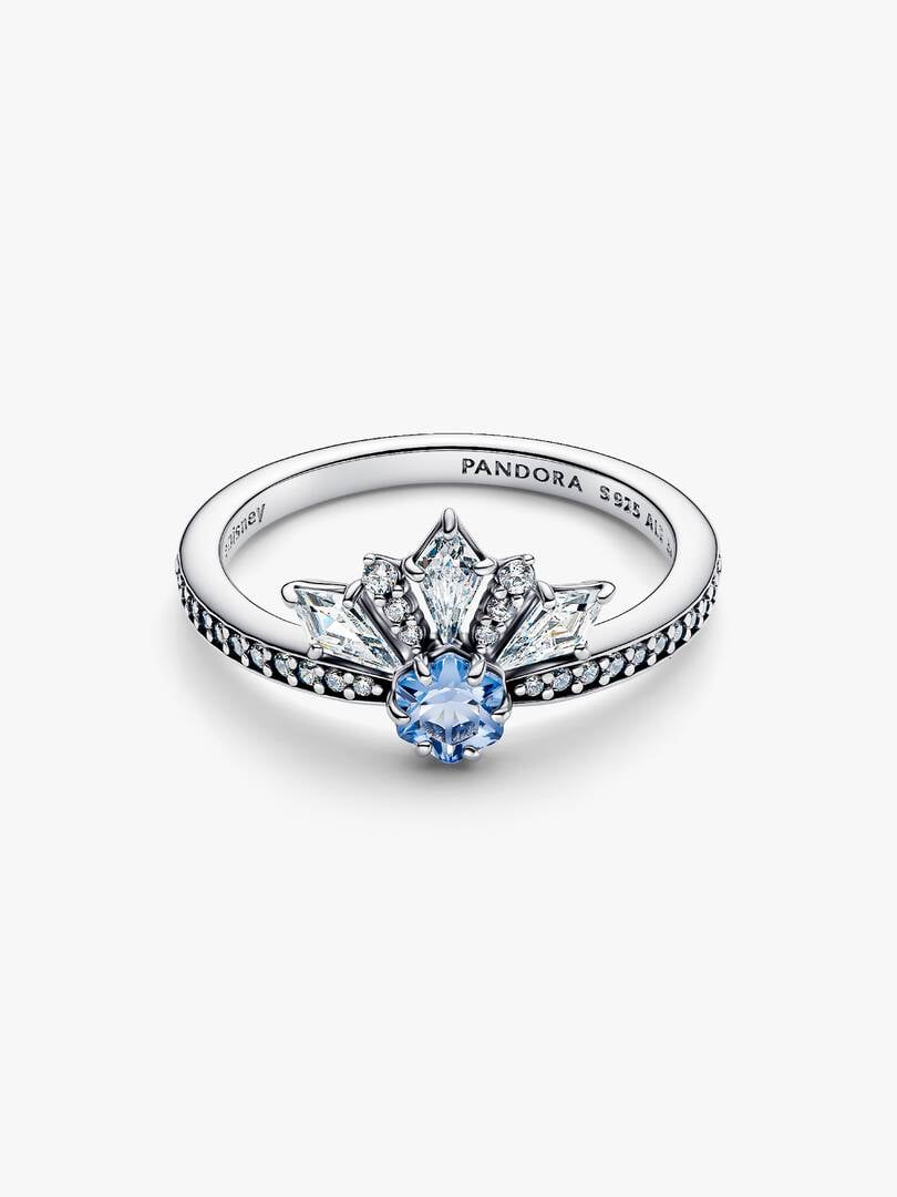 Shine like the Snow Queen. Show your love for Disney’s Frozen with this striking sterling silver ring designed in a tiara constellation and featuring blue and clear stones.