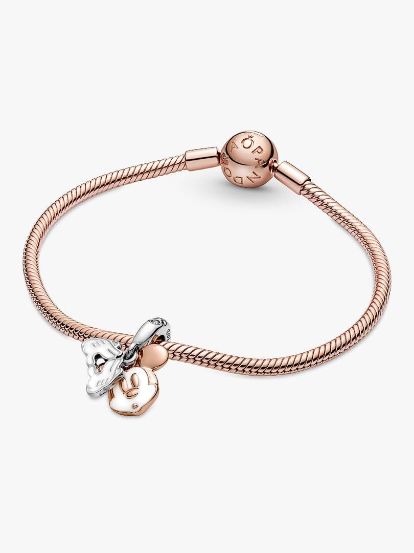 This Disney Mickey Mouse Double Dangle Charm is the perfect reminder to always be yourself and trust in who you are. Hand-finished in sterling silver and 14k rose gold plating, this charm features Disney’s Mickey Mouse p