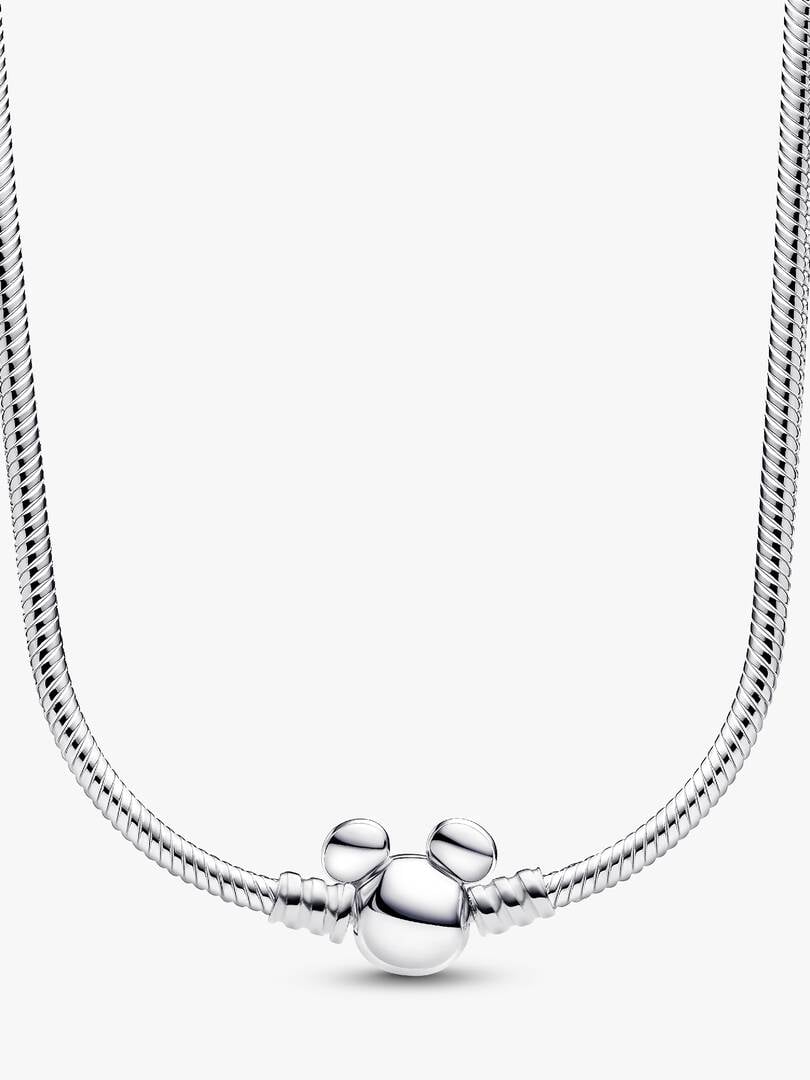 Disney’s Mickey Mouse is loved for his joyful character and heart of gold. This time, that heart of gold takes shape in sterling silver, as the clasp of a Disney x brand snake chain necklace design. The necklace can be