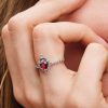 Mirror, mirror on the wall, which is the fairest ring of all? Channel the Evil Queen from Disney’s Snow White with this heart shaped ring that has been pierced with a dagger. Set with a heart-shaped fuchsia rose man-made