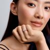 with 18 bead-set cubic zirconia. The bands are held together by the heart, creating a meaningful ring that celebrates the bonds that connect us.