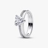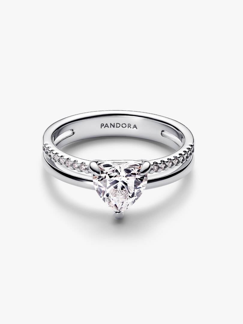 Celebrate love every day with our Double Band Heart Ring. Crafted from sterling silver, the ring features a heart-shaped clear cubic zirconia, set in the center of a polished band and a pavé band, which is adorned with 1