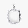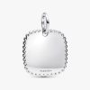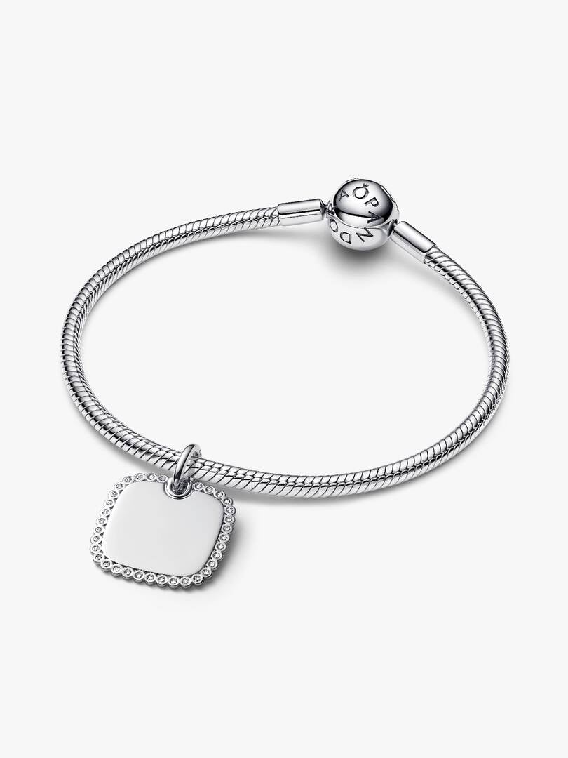 Minimalist style that makes a statement. Add our sterling silver engravable square disc pendant, outlined in a frame of sparkling stones, to your collection.