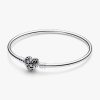 Fall in love with our Celestial Heart Clasp Bangle. Crafted in sterling silver, our iconic heart clasp gets a stellar update, featuring a moonlit night sky complete with sparkling stones. Whether you wear it with or with