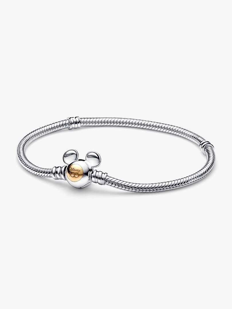 Make precious memories last forever with our Disney 100th Anniversary Moments Snake Chain Bracelet. Hand-finished in sterling silver, this limited edition collector’s piece features a Mickey Mouse-shaped clasp with a 14k