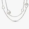 This radiant lab-grown diamond necklace features modern interpretations of infinity motifs, set on a long 14k white gold box chain that can be doubled up for layered styling. The chain features five fixed infinity pendan