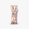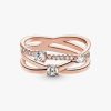 bigger stones are set across all three for extra sparkle. As this wide-band ring has a pre-stacked look, teaming it with other shimmering brand Timeless rings will make a bold statement.