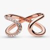 strikes. This 14k rose gold-plated ring is finished with 21 round brilliant-cut cubic zirconia, making it the perfect statement, symbolising the power of an infinite connection through its directional design and generous dimensions.