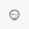 Bring a touch of tropical charm to your collection with this vibrant hibiscus flower charm. Crafted from sterling silver, it features a bright pink enamelled hibiscus on one side and “Hawaii” on the other. Wear it as a r
