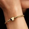 Lead with the heart and lock down this snake chain bracelet. Crafted in 14k gold plating, it features a twisted chain with an engravable heart clasp to leave your mark.