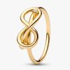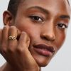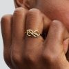 Bring a symbol of the infinite into the everyday with the Infinity Knot Ring. Hand-finished in 14k gold plating, this ring centers on an infinity knot symbol featuring a sparkling stone at each end. Sleek and delicate, t
