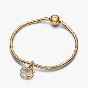 The Leo charm has two distinct sides, one polished with cubic zirconia dotted around and the other beaded with stars for that extra celestial touch. Pre-styled on a matching Heart Clasp Snake Chain Bracelet, wear it as a reminder of your unique Leo attributes or gift to the charm-loving Leo in your life.