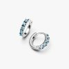Add a pop of color to your look with these beautiful earrings, showcasing a row of aquamarine blue crystals in a delicate design.