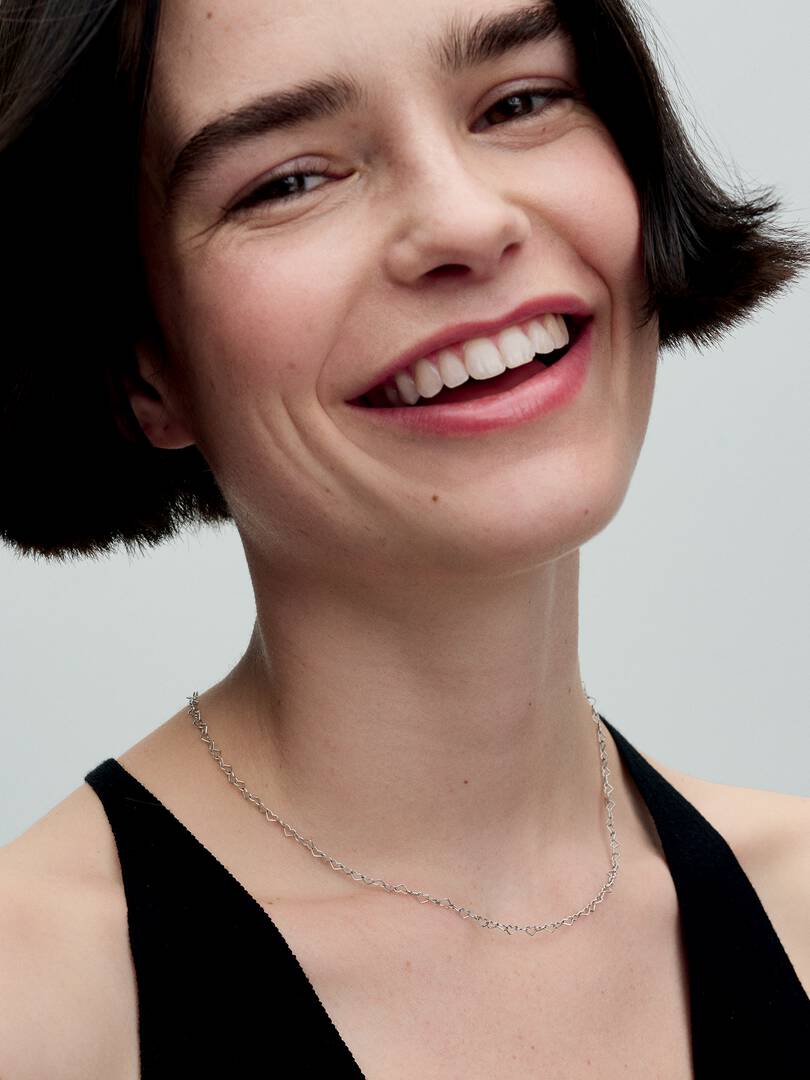 Go for delicate elegance when you choose the Linked Hearts Collier Necklace. Tiny sterling silver linked hearts form an adjustable chain necklace. This design takes a classic shape and reinvents it in the form of a scale