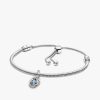 beautiful sea aqua blue man-made crystal at the center. Surrounded by three small cubic zirconia stones on the front and a cut-out heart shape on the back for maximum sparkle. This dazzling dangle charm comes on a matching sterling silver brand Moments Snake Chain Slider Bracelet. Capture the symbolism of a March birthday, milestone or anniversary with this brilliant set. Unconditionally. Infinitely. Be love.