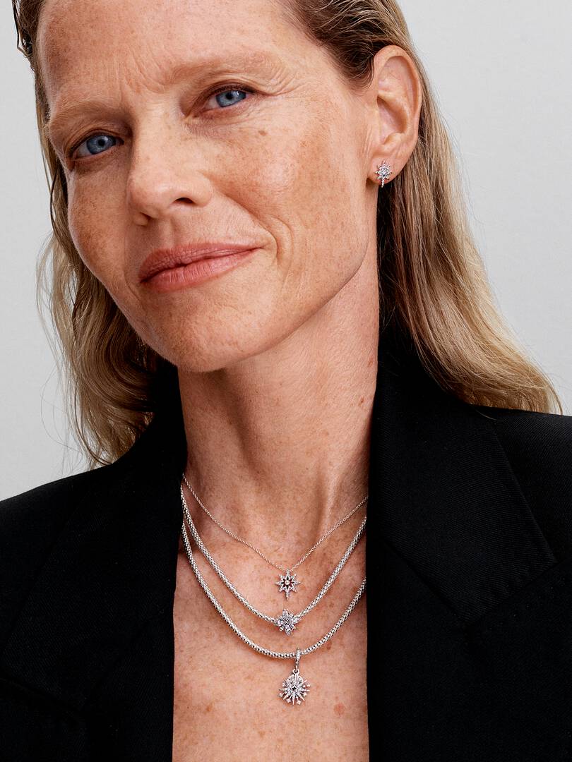 Light up your look with our North Star Pendant Necklace in sterling silver. Featuring the symbolic design of the Polaris shining with clear cubic zirconia from a classic cable chain, this necklace adds a celestial glow t
