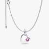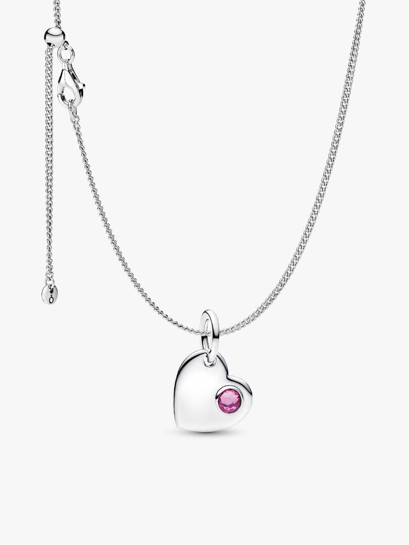 October babies, wear your birthstone color close to your heart. This sterling silver set includes a necklace and a dangle heart charm set with a pink man-made crystal.