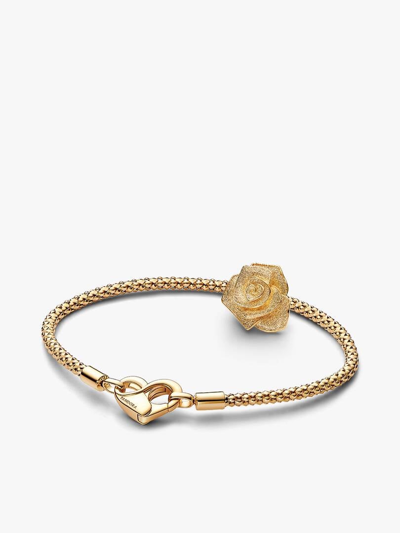 etal edges, embodying the timeless elegance of a golden rose. Paired with the brand Moments Studded Chain Bracelet in a 14k gold-plated blend, this bracelet showcases a textured chain and heart-shaped infinity clasp, creating a romantic and sophisticated look. A perfect way to celebrate love and add a touch of gold to your collection.