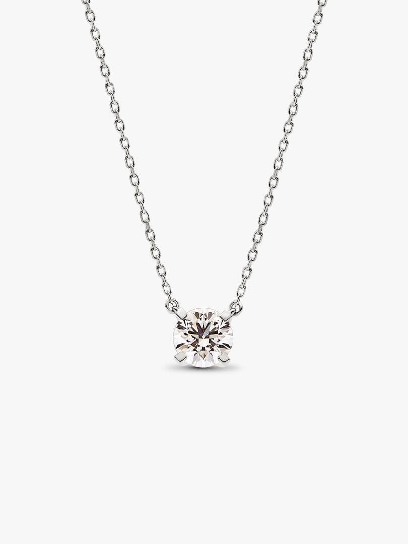 A fresh twist on a classic. The brand Era 14k White Gold Lab-grown Diamond Pendant Necklace showcases a 1.00 carat round brilliant excellent cut lab-created diamond in a four-prong setting that combines round and flat