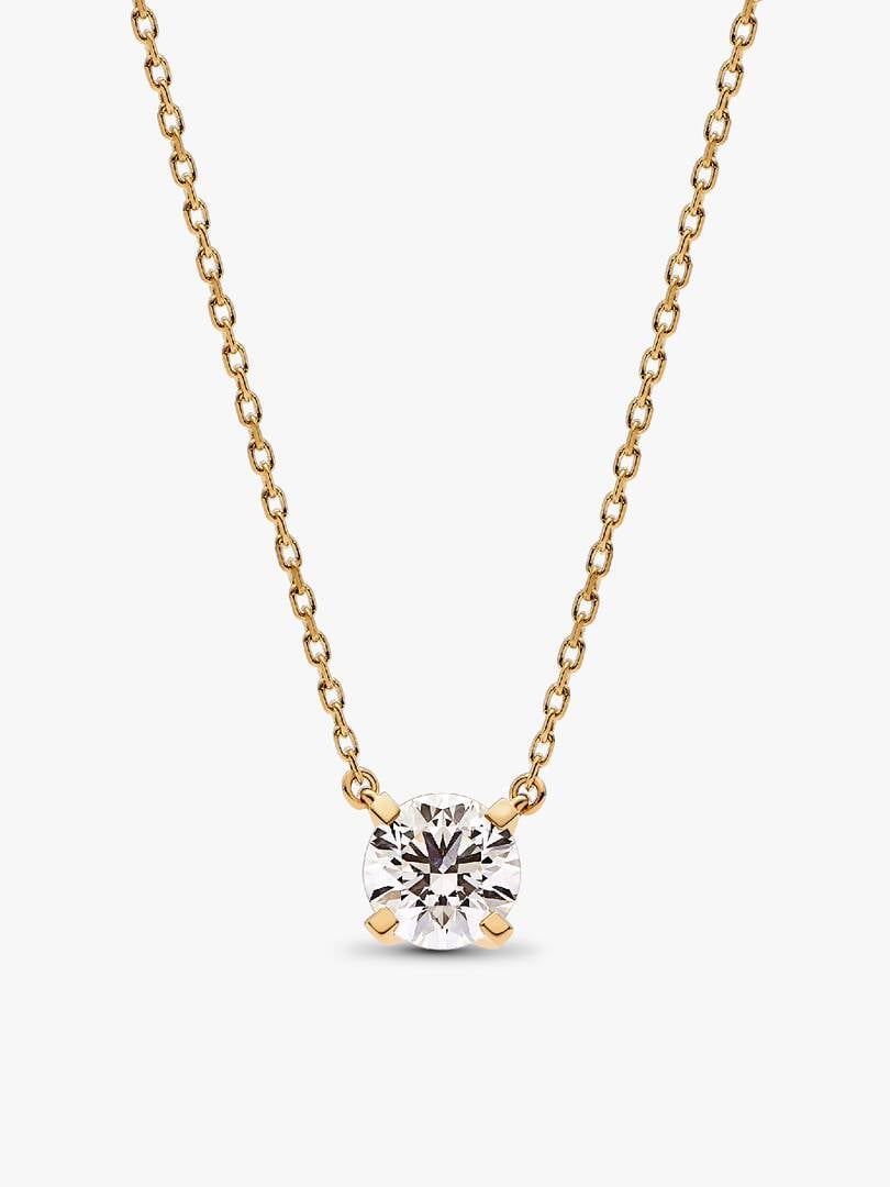 A fresh twist on a classic. The brand Era 14k Gold Lab-grown Diamond Pendant Necklace showcases a 1.00 carat round brilliant excellent cut lab-created diamond in a four-prong setting that combines round and flat profil