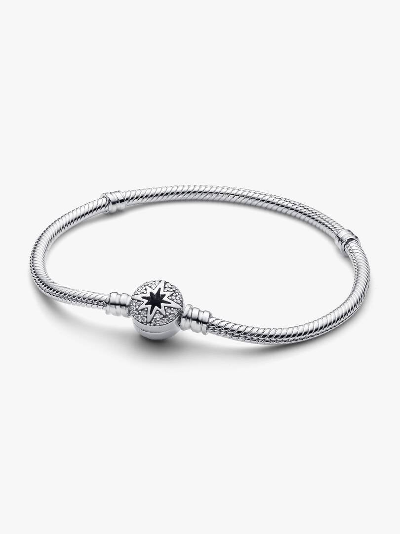Shine bright with the North Star Engravable Charm Bracelet Set, a stunning trio inspired by the guiding light of the stars. The set includes a snake chain bracelet with a star cut-out clasp surrounded by pavé stones, sym