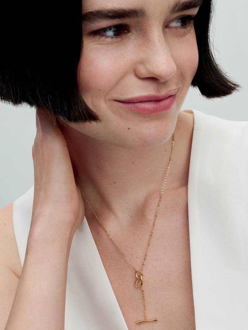 the necklace with the imperfectly-shaped T-bar closure. This necklace will serve as a reminder that nature is beautifully imperfect by design. Complete your everyday look with this delicate, effortless style, or gift it to a chic loved one in your life.
