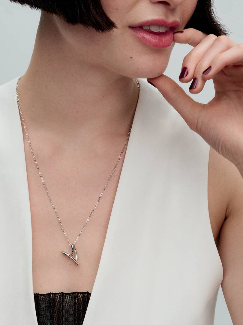 d features two loops at the top that allow you to play with how the heart pendant hangs (at an angle or straight). Wear this sleek necklace solo for minimalist style or layer it with other sterling silver styles for a monochromatic look.