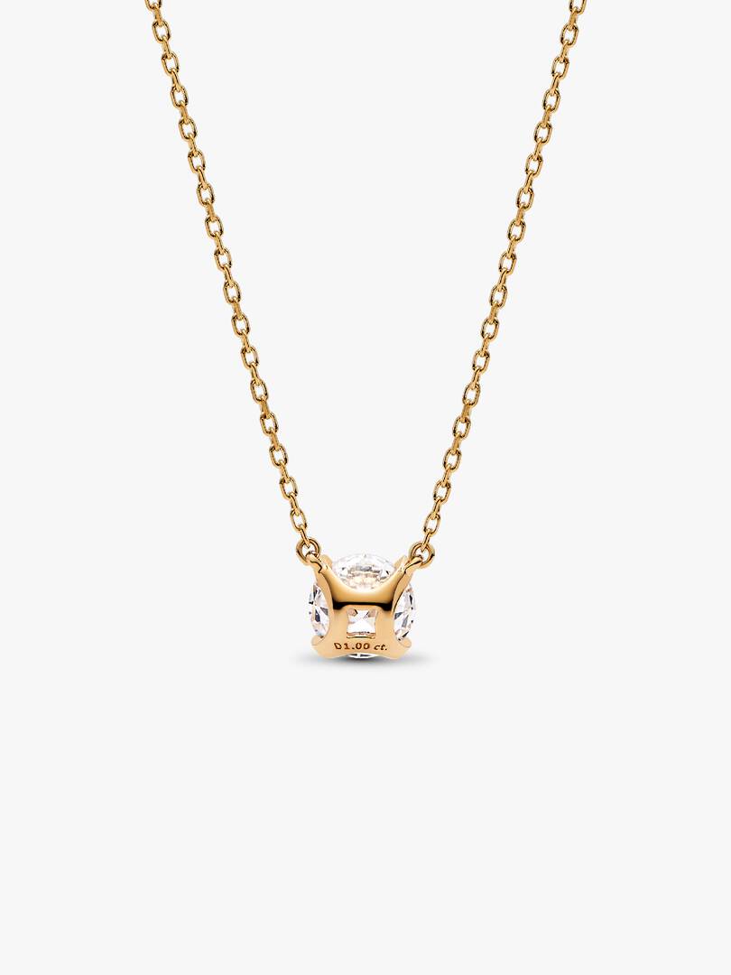 es, creating a modern aesthetic and opening the stone to the light for amplified sparkle. The 14k gold pendant is fixed to a matching diamond-cut cable chain, adjustable to two lengths. This lab-grown diamond necklace is a universally wearable piece that will elevate your looks day and night for years to come. Each brand Lab-grown diamond is treated with a post-growth color enhancement called annealing.