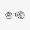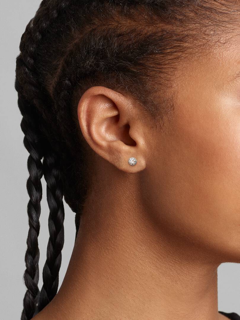 t of 0.50. Each stone is framed by a sterling silver bezel setting with a sleek, contemporary aesthetic. Cut-outs on the sides of the bezel setting let in the light for ultimate sparkle. A classic that brilliantly rises above time, these lab-grown diamond earrings are the perfect elevated staple. Wear them alone for a minimalist styling or add subtle sparkle to your earring stack. Each brand Lab-grown diamond is treated with a post-growth color enhancement called annealing.