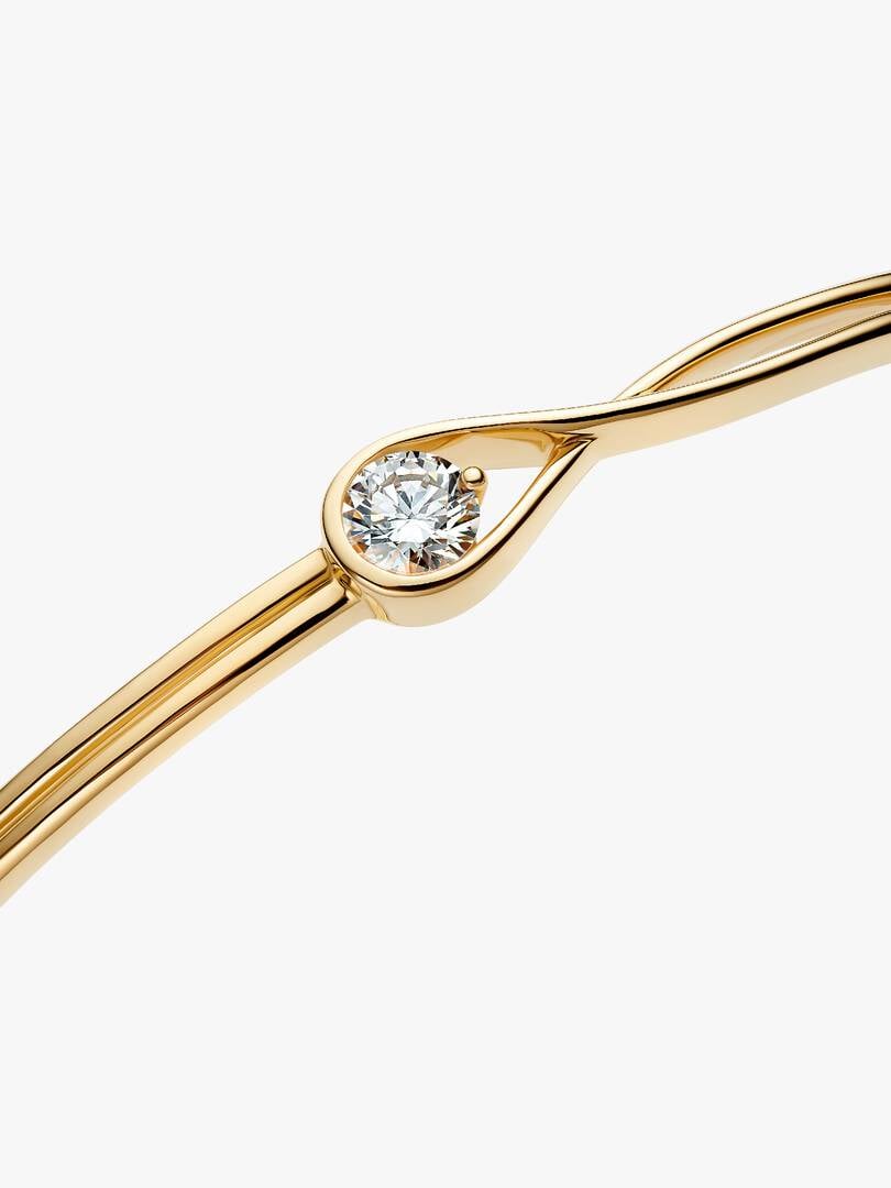 Celebrate your power to shine with this brand Infinite 14k Gold Lab-Grown Diamond Bangle, hand-set with a radiant 0.50 carat lab-grown diamond. The round, excellent cut lab-grown diamond floats inside our unique infini