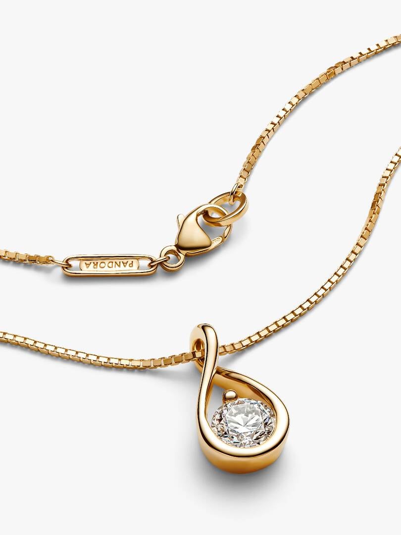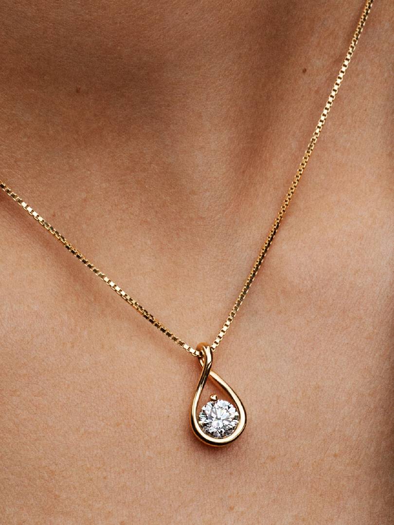 finite possibility the future holds, this pendant features a round, excellent cut lab-grown diamond in a modern infinity setting that flows around the stone and suspends it in mid-air. An elevated piece that will shine on any neckline. brand Infinite lab-grown diamonds at and above 0.50 carat are certified by IGI. Each brand Lab-grown diamond is treated with a post-growth color enhancement called annealing.