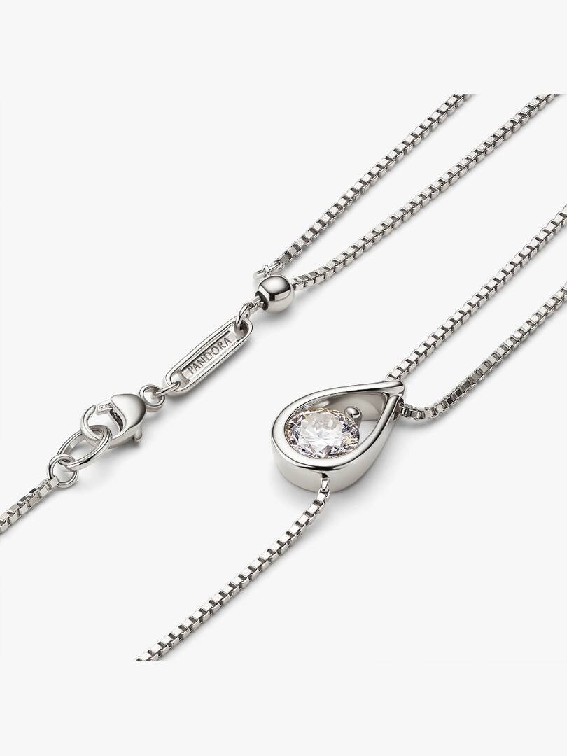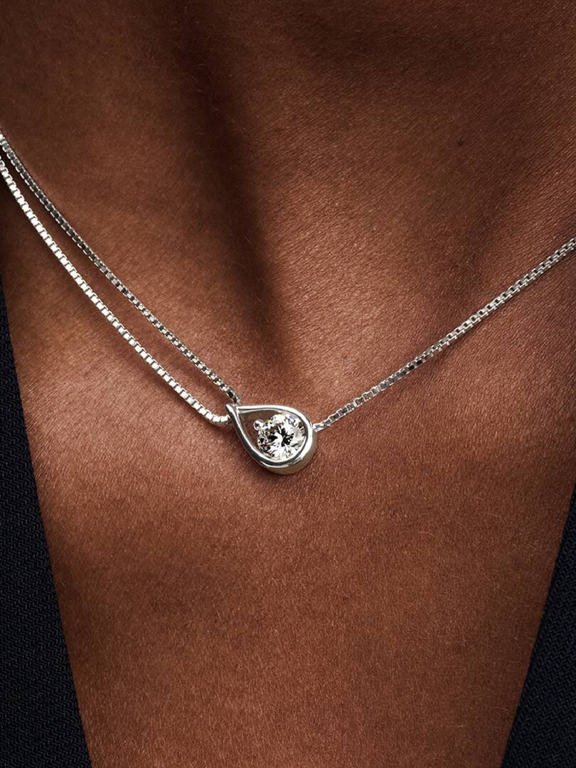 necklace. Our fluid infinity design symbolizes infinite joy, optimism and strength. The round brilliant excellent cut lab-grown diamond is suspended from a refined box chain in 14k white gold, which doubles up on one side to add a modern twist to the design. The double chain leads to a sliding ball closure, allowing you to adjust the length of the necklace so it shines on any neckline. brand Infinite lab-grown diamonds at and above 0.50 carat are certified by IGI. Each brand Lab-grown diamond is treated with a post-growth color enhancement called annealing.