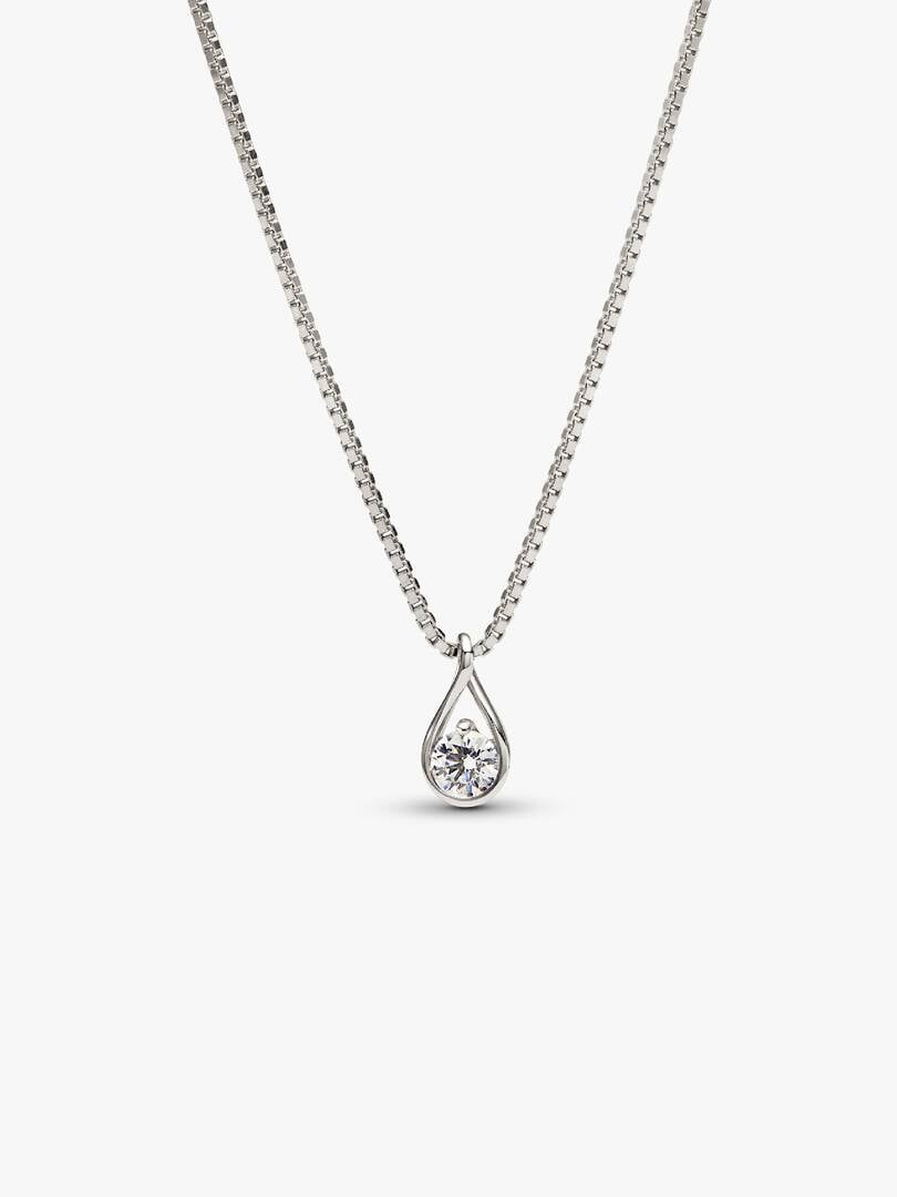 This 14k white gold pendant is hand-set with a radiant 0.25 carat lab-grown diamond on a matching 14k white gold box chain necklace. A powerful reminder of all we are, all we can be and the infinite possibility the futur