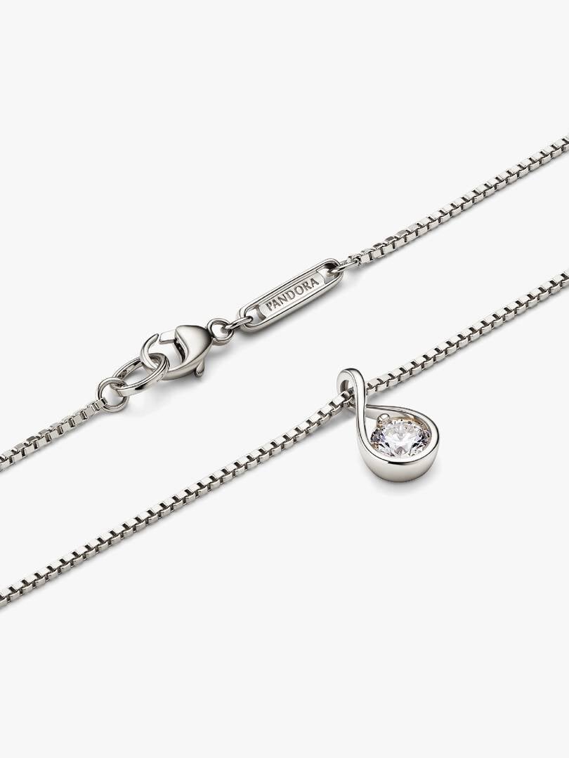 e holds, this pendant features a round brilliant excellent cut lab-grown diamond in a modern infinity setting that flows around the stone and suspends it in mid-air. An elevated piece that will shine on any neckline. Each brand Lab-grown diamond is treated with a post-growth color enhancement called annealing.