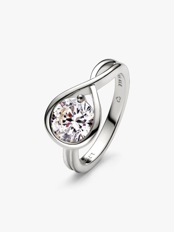A solid 14k white gold ring hand-set with a 1.75 carat lab-grown diamond. A beautiful statement of empowerment, or an eloquent declaration of love. A modern infinity setting flows seamlessly around the round brilliant ex