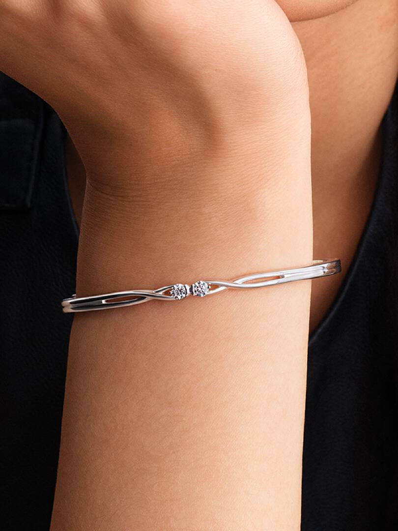 Infinite design, infinite styling possibilities. Our brand Infinite bangle is crafted in sterling silver, with two 0.15ct lab-grown diamonds that meet its centre. Set in our unique interpretation of an infinity symbol,