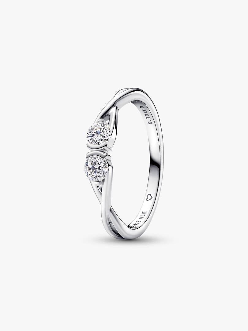 ds, totaling 0.30 carat, in a modern infinity shape. Hand-set in sterling silver, each lab-grown diamond rests inside an infinity loop, appearing to float weightlessly with the support of a prong-and-partial-bezel setting. Inspired by infinite connections, the unique infinity design flows seamlessly around the stones and represents your eternal bonds. Each brand Lab-grown diamond is treated with a post-growth color enhancement called annealing.