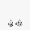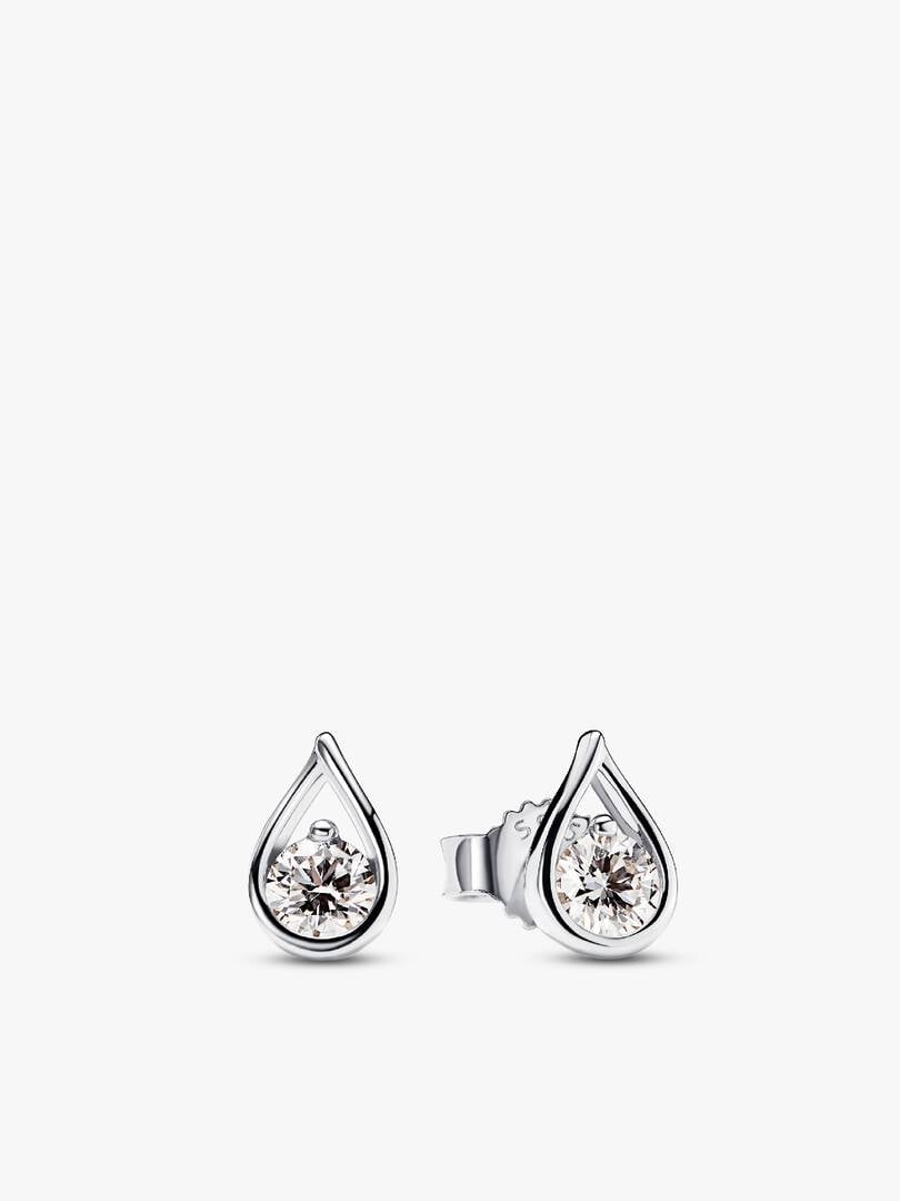 A pair of solid sterling silver stud earrings each hand set with a 0.10 carat lab-grown diamond. A sparkling celebration of the infinite potential within all of us, these earrings feature a radiant round brilliant excell
