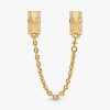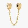 Keep charms in check with our brand Logo Safety Chain Charm, made for brand Moments bracelets. Plated with 14k gold, the clips are detailed with our logo as well as lines of cubic zirconia stones. The safety chain ch