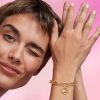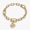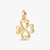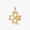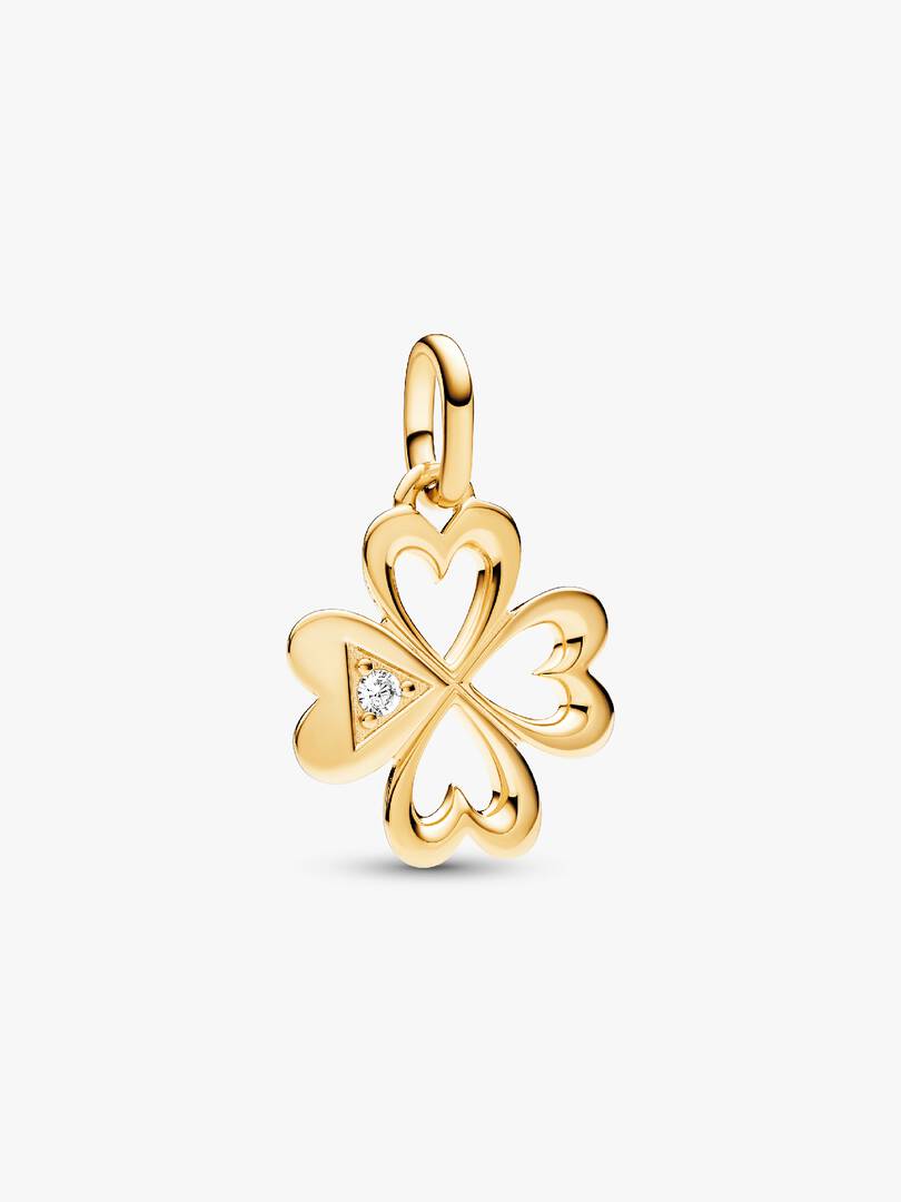 hearts and one solid heart set with a sparkling stone inside an triangle detail; the other side is covered in a microbead pattern on all four leaves. This clover medallion charm will bring a golden glow to your look while reminding you that you make your own luck. Compatible with brand ME and brand Moments.