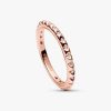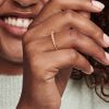 It’s rosé all day with the brand ME Pyramids Ring. This 14k rose gold-plated ring is punctuated by pyramid studs with clear cubic zirconia stones set between them. A grooved line along the edges of the ring adds a subt