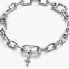 Bring a 90s edge to your vibe with the brand ME Sparkling Cross Mini Dangle Charm. Putting a fresh spin on a timeless symbol, this sterling silver cross mini dangle charm has microbeads on one side, sparkling stones on